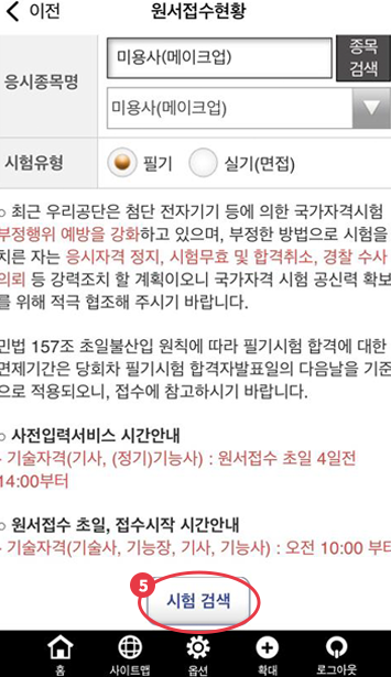 ‘시험검색’ 클릭해 회차 확인